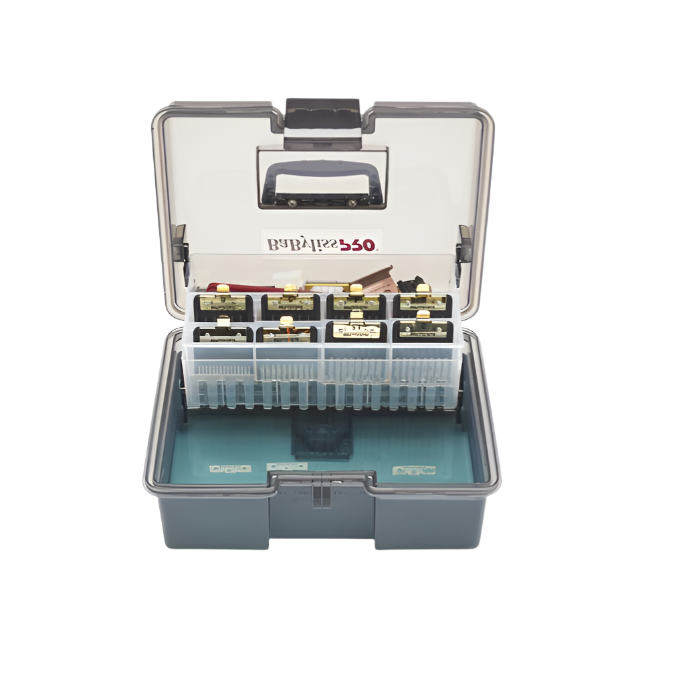 - Dual Soaking Compartments - specially designed to hold shears, combs, guards and blades