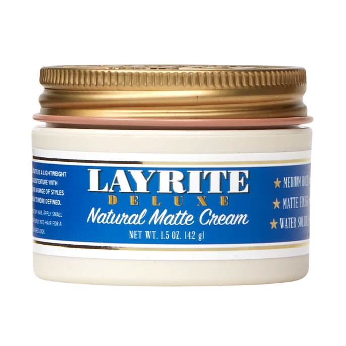 Layrite Deluxe Natural Matte Cream 1.5oz offers expert-level styling with a natural matte finish that keeps hair looking effortlessly groomed without shine. Its lightweight formula provides flexible hold and smooth texture, ideal for creating a variety of hairstyles while maintaining hair health. Perfect for all hair types, this cream ensures long-lasting control and a natural look throughout the day.