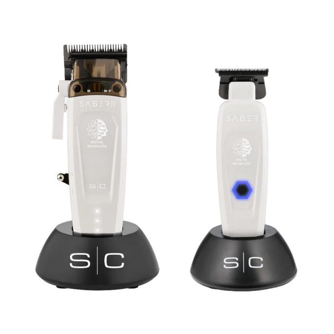 Includes: Clipper, charging stand and cord, stretch taper bracket, spare cam follower, 4 Tight Dub magnetic guards (#0.5 (1/16”), #1 (1/8”), #1.5 (3/16”), #2 (1/4”)), 3 modular drop tops, extra screws, mini screwdriver, cleaning/maintenance kit.